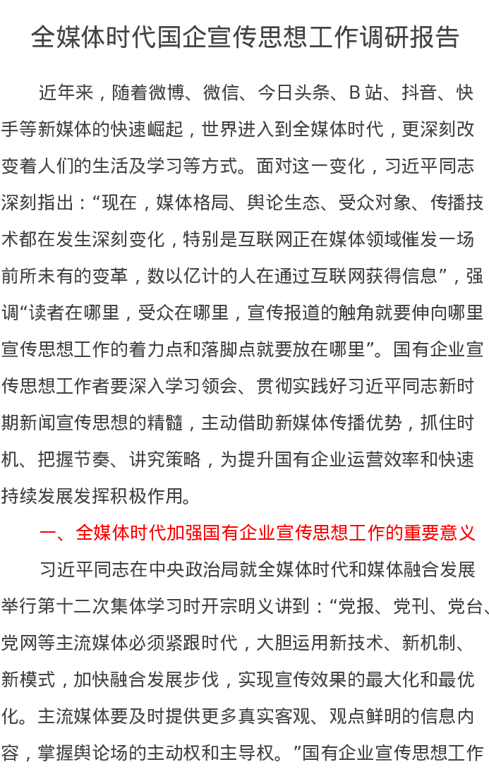 全媒体时代国企宣传思想工作调研报告