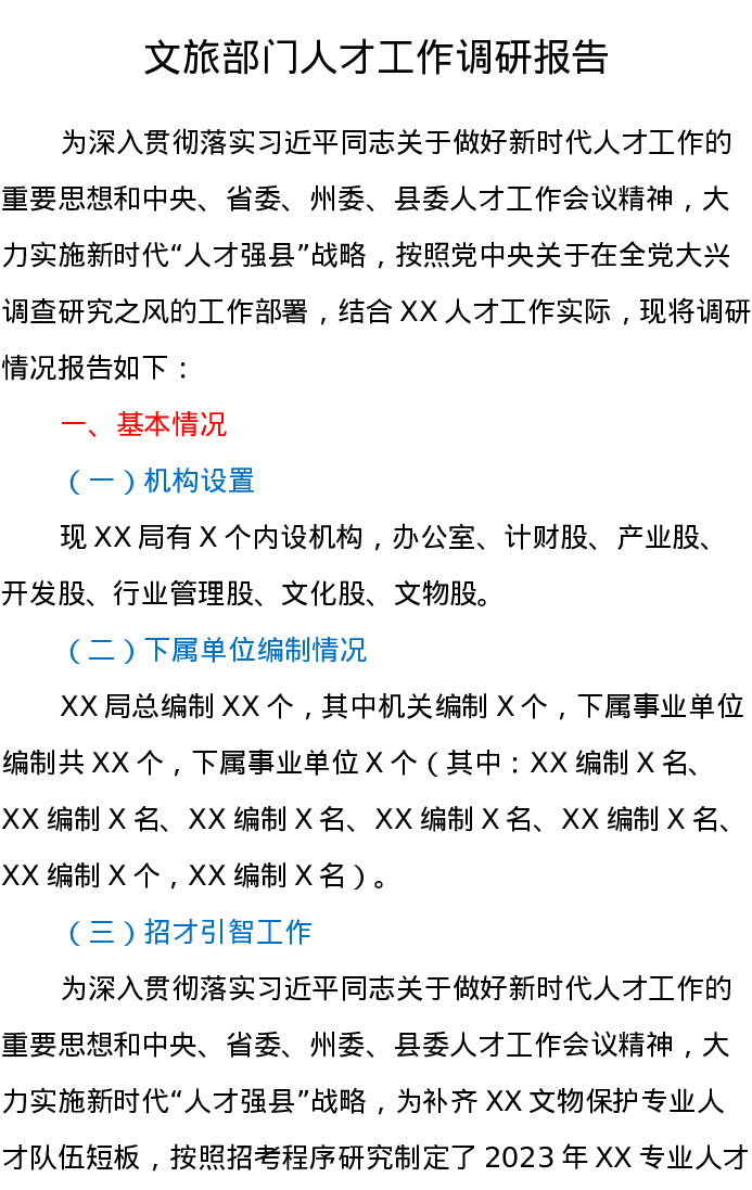 文旅部门人才工作调研报告
