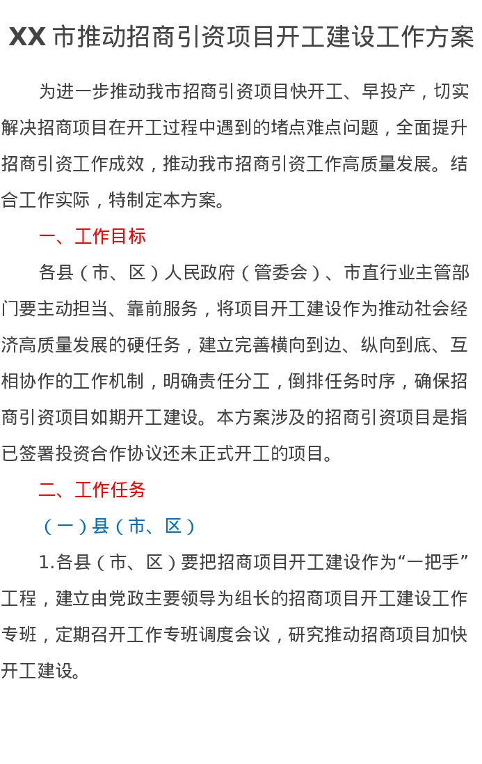 XX市推动招商引资项目开工建设工作方案