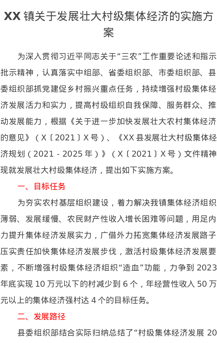 XX镇关于发展壮大村级集体经济的实施方案