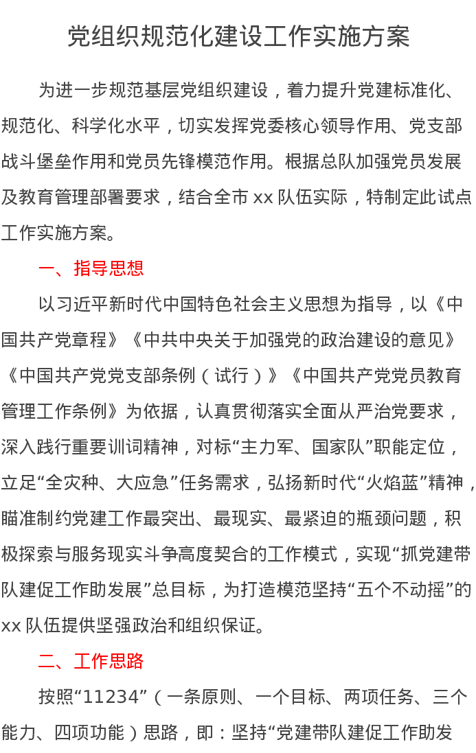 党组织规范化建设工作实施方案