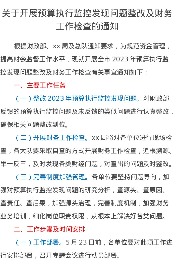 关于开展预算执行监控发现问题整改及财务工作检查的通知