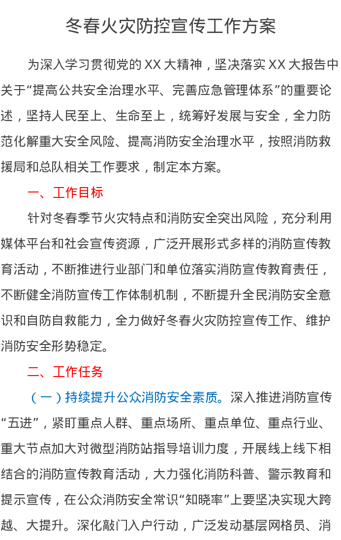 冬春火灾防控宣传工作方案