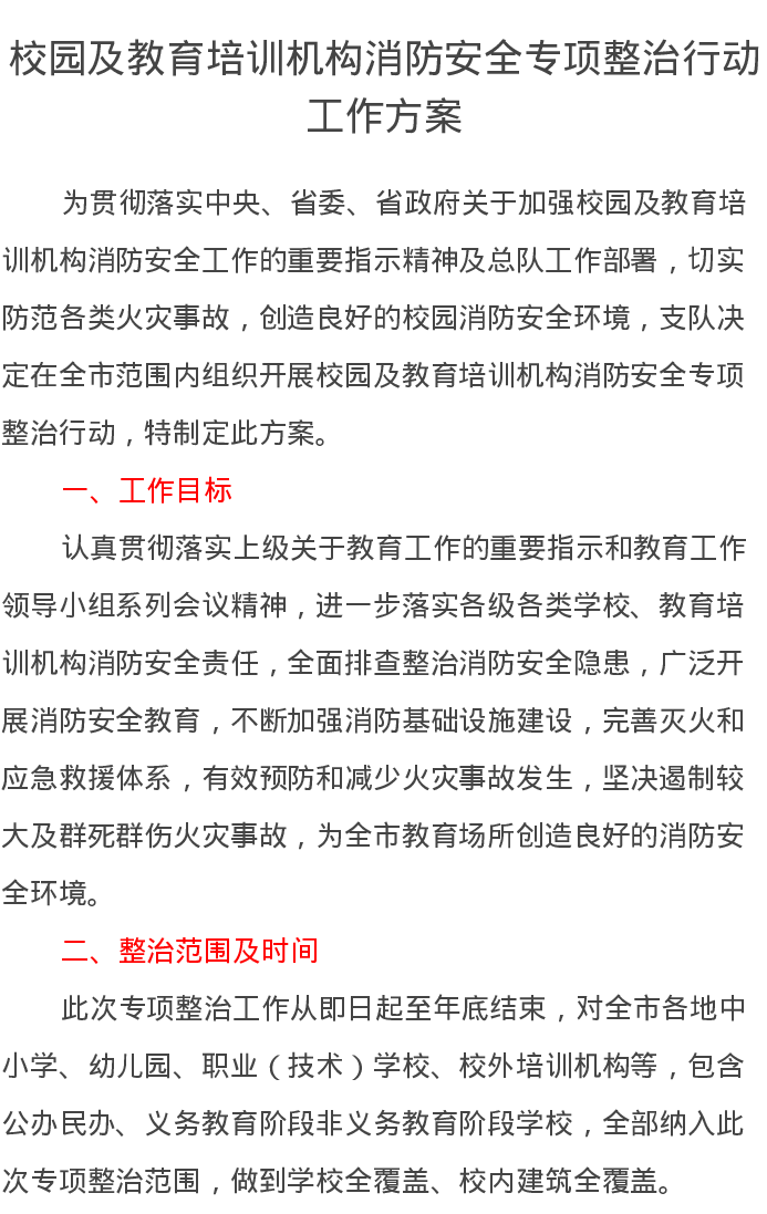 校园及教育培训机构消防安全专项整治行动工作方案
