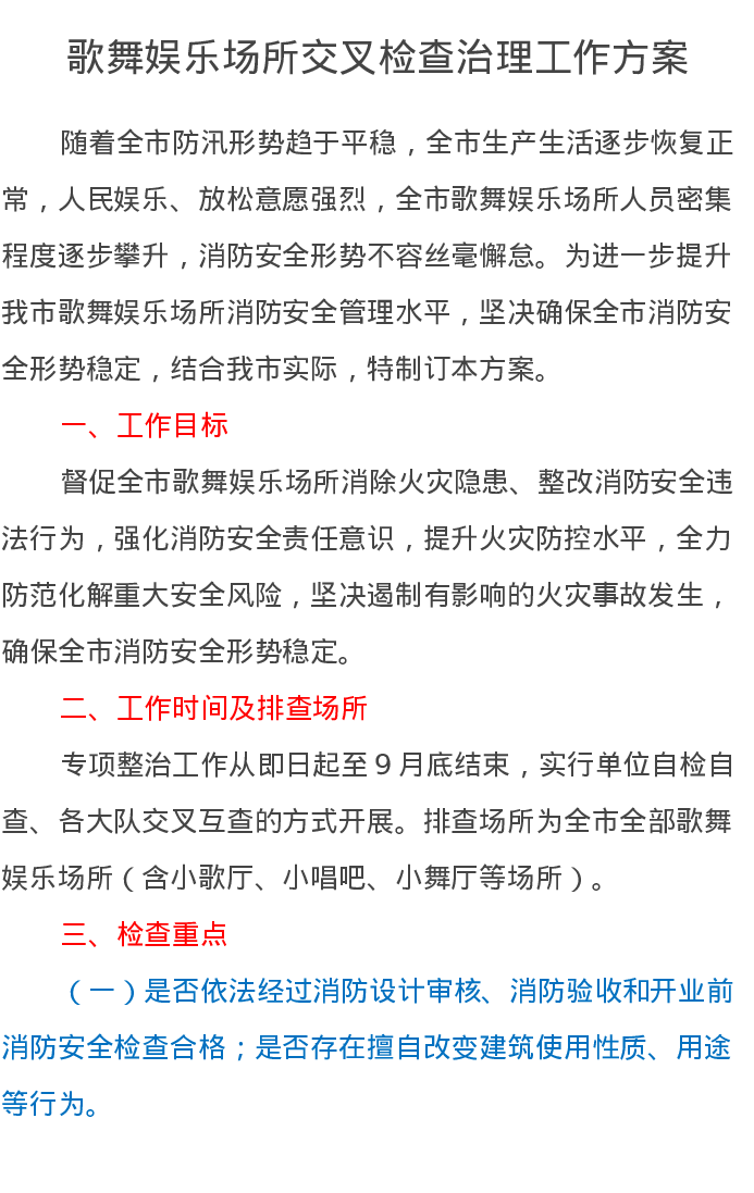 歌舞娱乐场所交叉检查治理工作方案