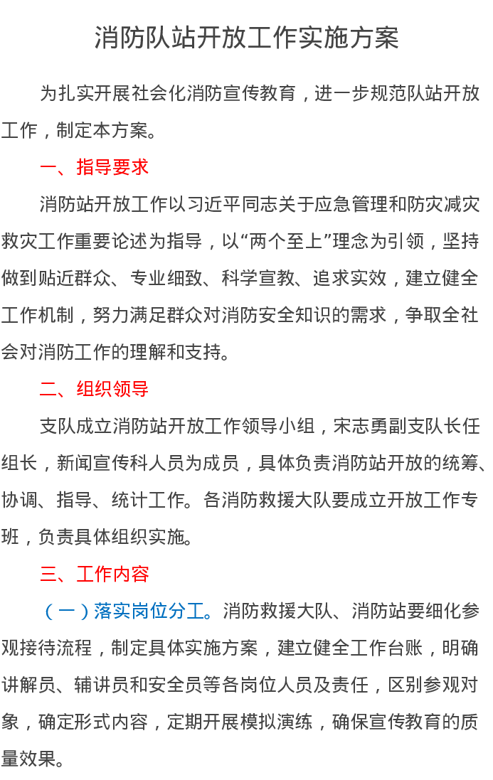 消防队站开放工作实施方案