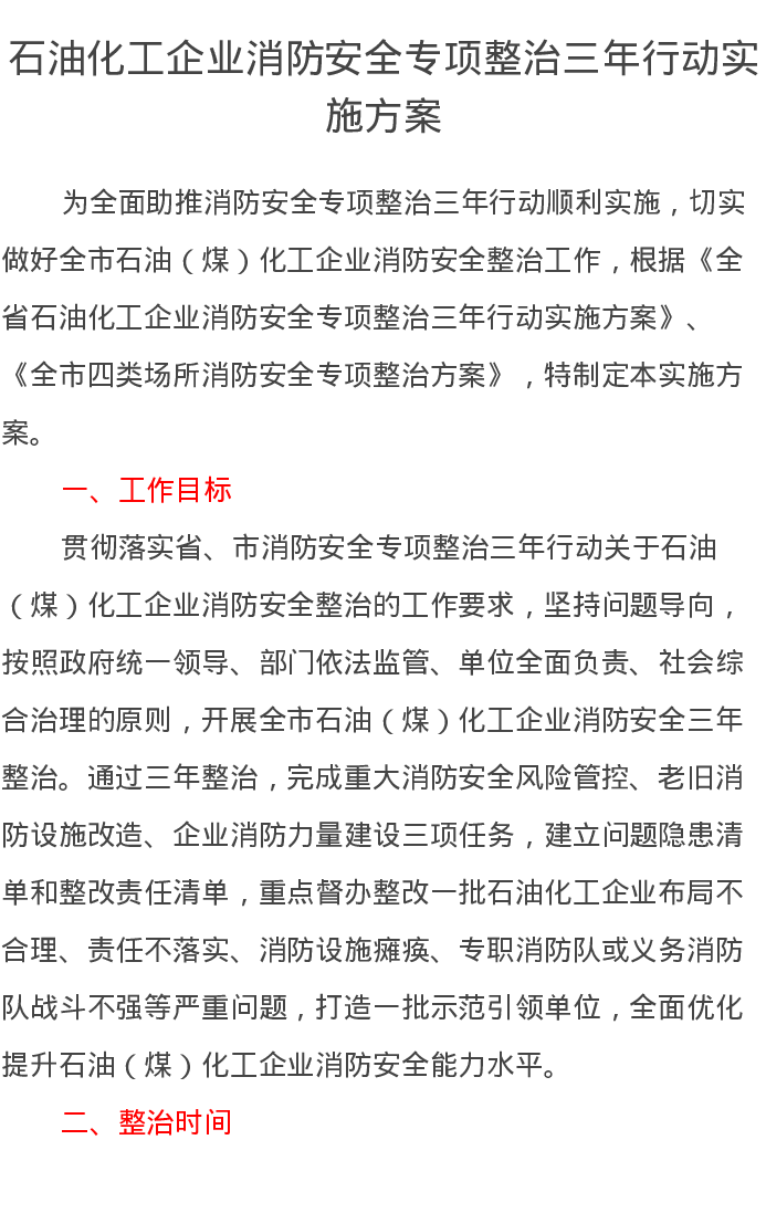 石油化工企业消防安全专项整治三年行动实施方案