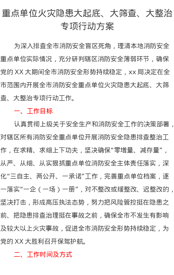 重点单位火灾隐患大起底、大筛查、大整治专项行动方案