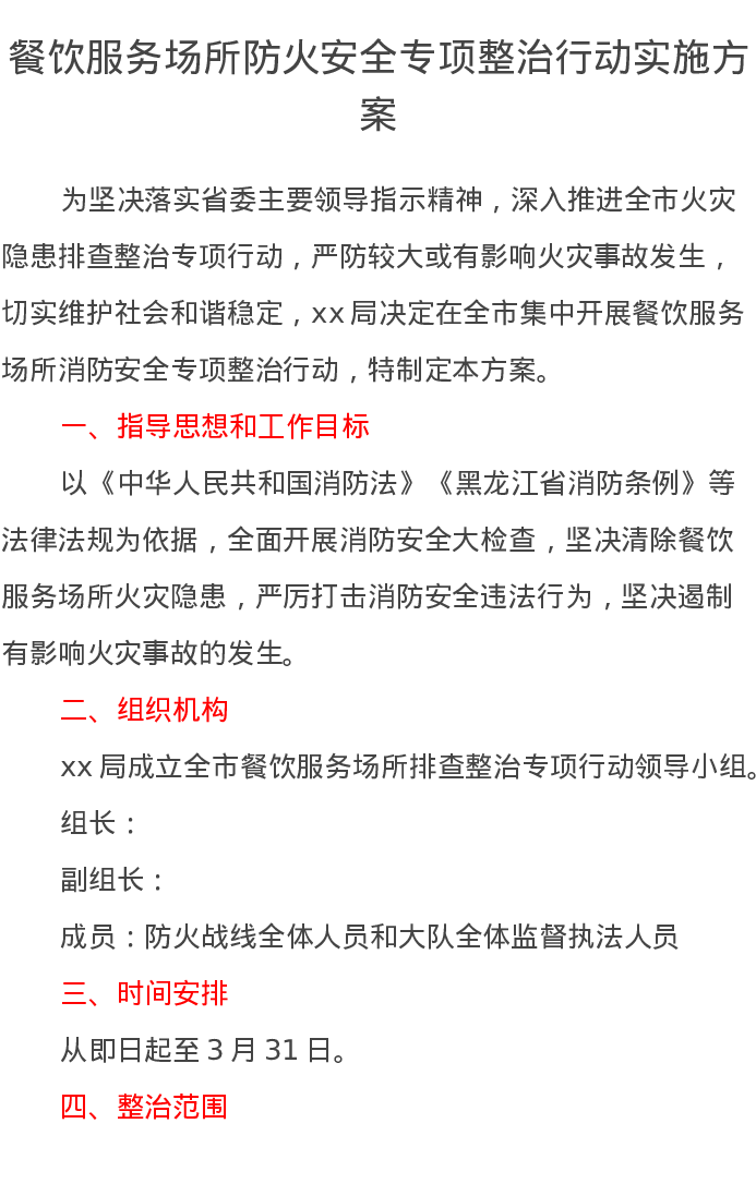 餐饮服务场所防火安全专项整治行动实施方案