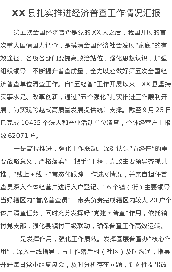 XX县扎实推进经济普查工作情况汇报