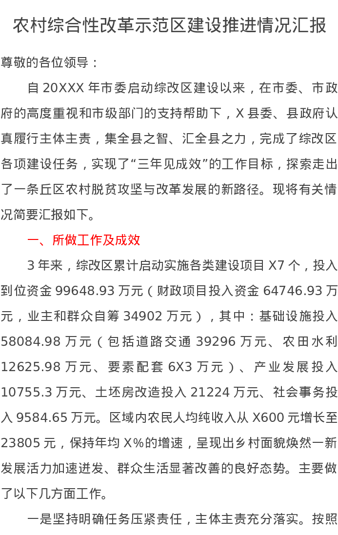 农村综合性改革示范区建设推进情况汇报