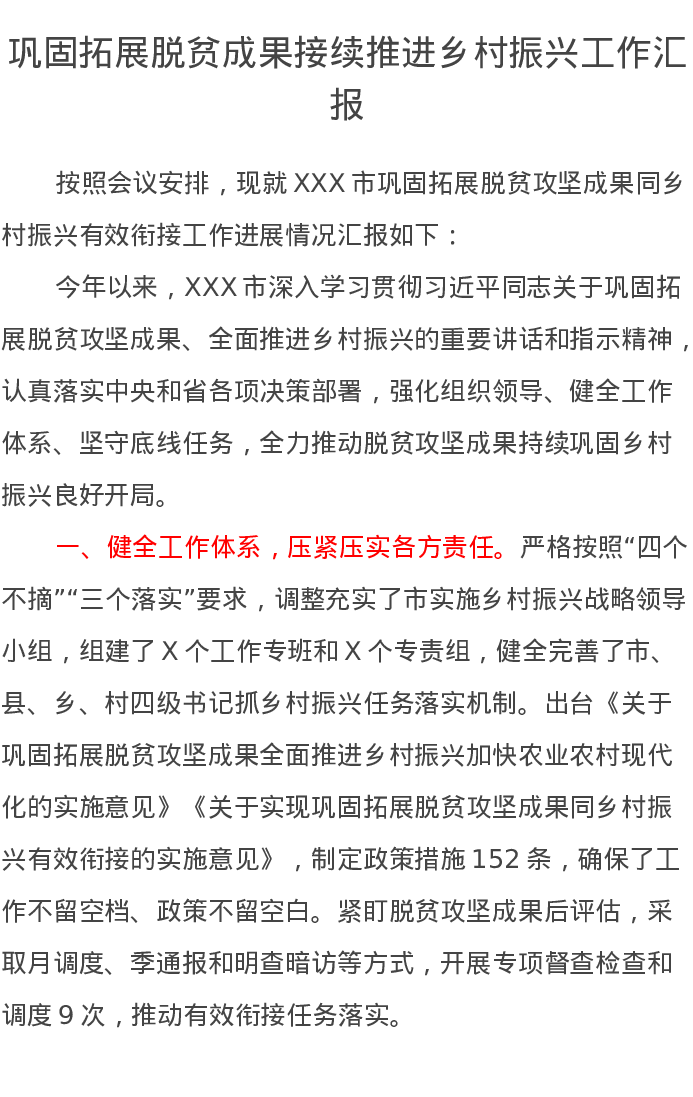 巩固拓展脱贫成果接续推进乡村振兴工作汇报
