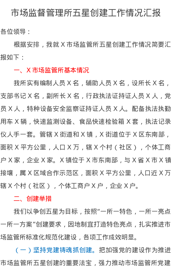 市场监督管理所五星创建工作情况汇报