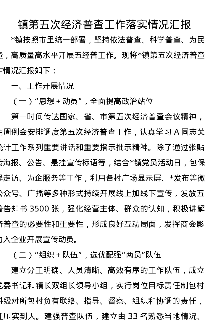 镇第五次经济普查工作落实情况汇报