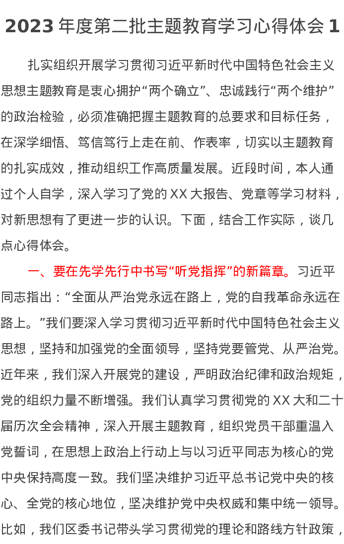 2023年度第二批主题教育学习心得体会1(特色社会主义思想)