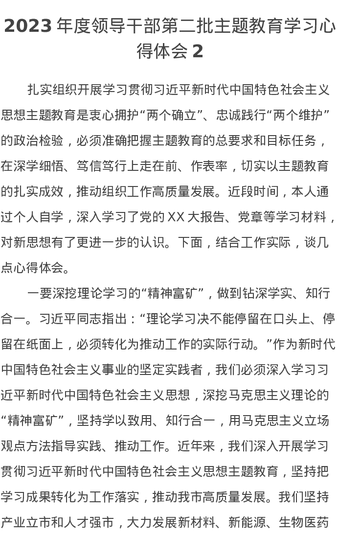 2023年度领导干部第二批主题教育学习心得体会2(特色社会主义思想)