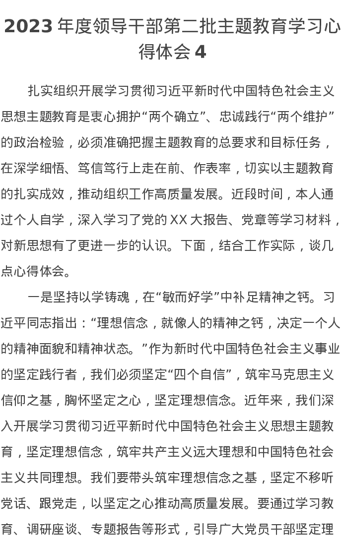 2023年度领导干部第二批主题教育学习心得体会4(特色社会主义思想)