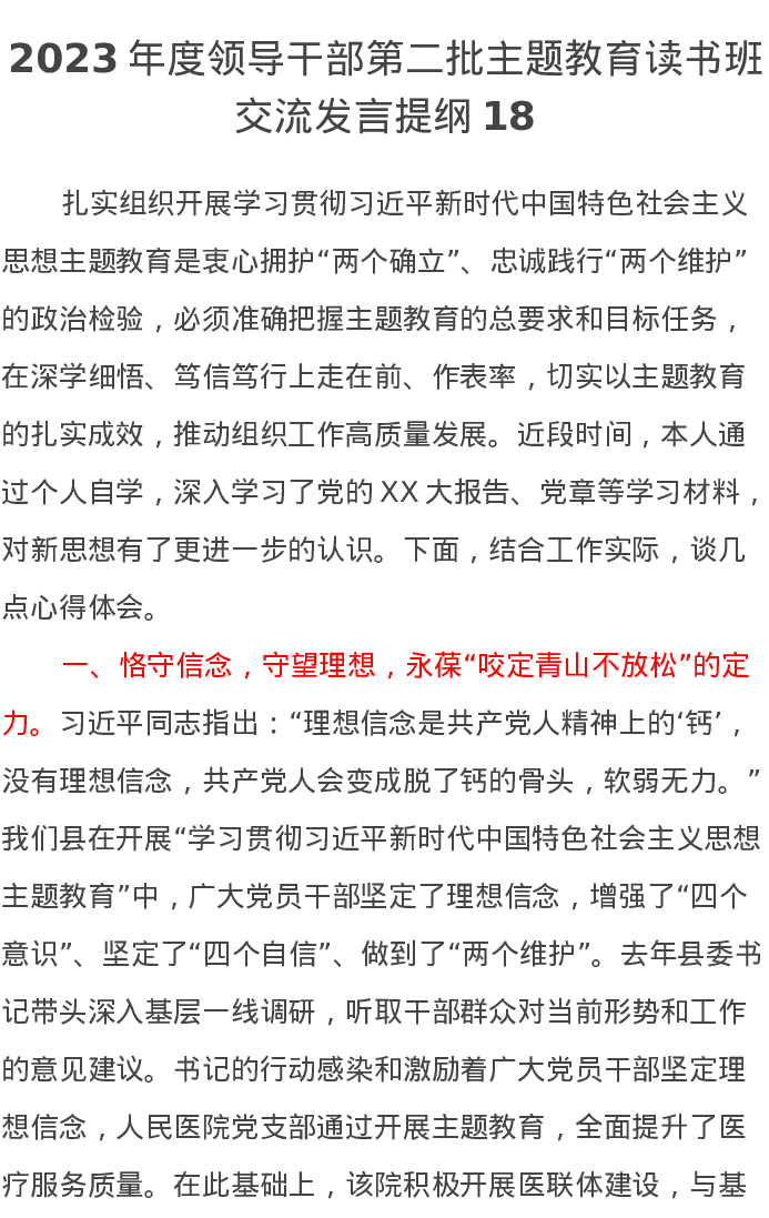 2023年度领导干部第二批主题教育读书班交流发言提纲19(特色社会主义思想)