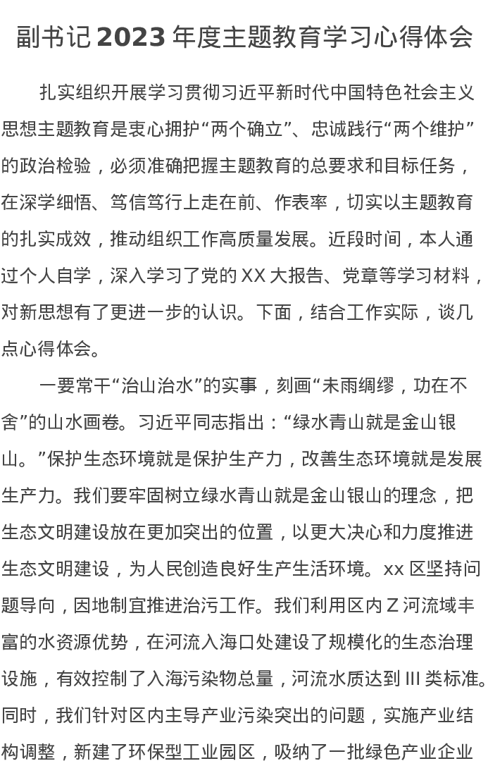 副书记2023年度第二批主题教育学习心得体会(特色社会主义思想)