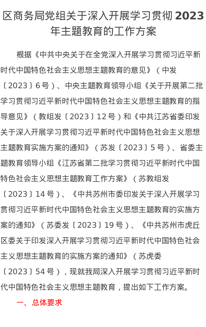 区商务局党组关于深入开展学习贯彻2023年主题教育的工作方案(特色社会主义思想)