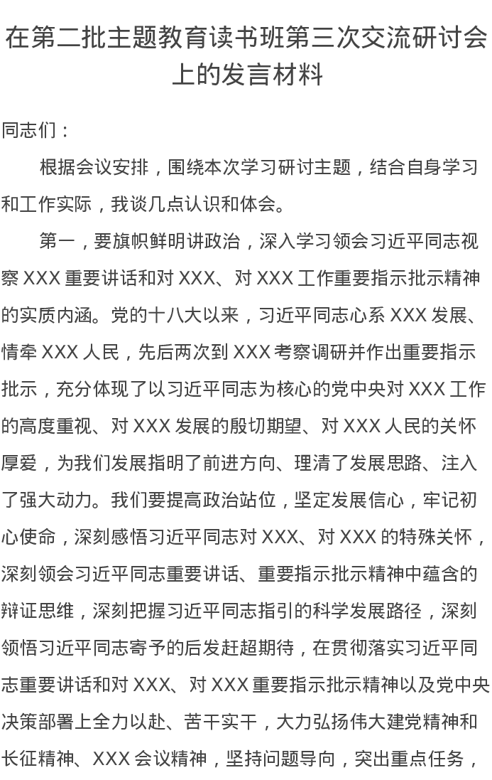 在第二批主题教育读书班第三次交流研讨会上的发言材料(特色社会主义思想)