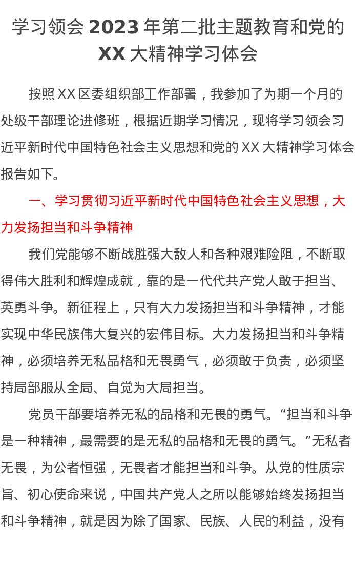 学习领会2023年第二批主题教育和党的XX大精神学习体会(特色社会主义思想)