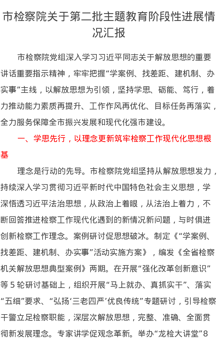 市检察院关于第二批主题教育阶段性进展情况汇报(特色社会主义思想)
