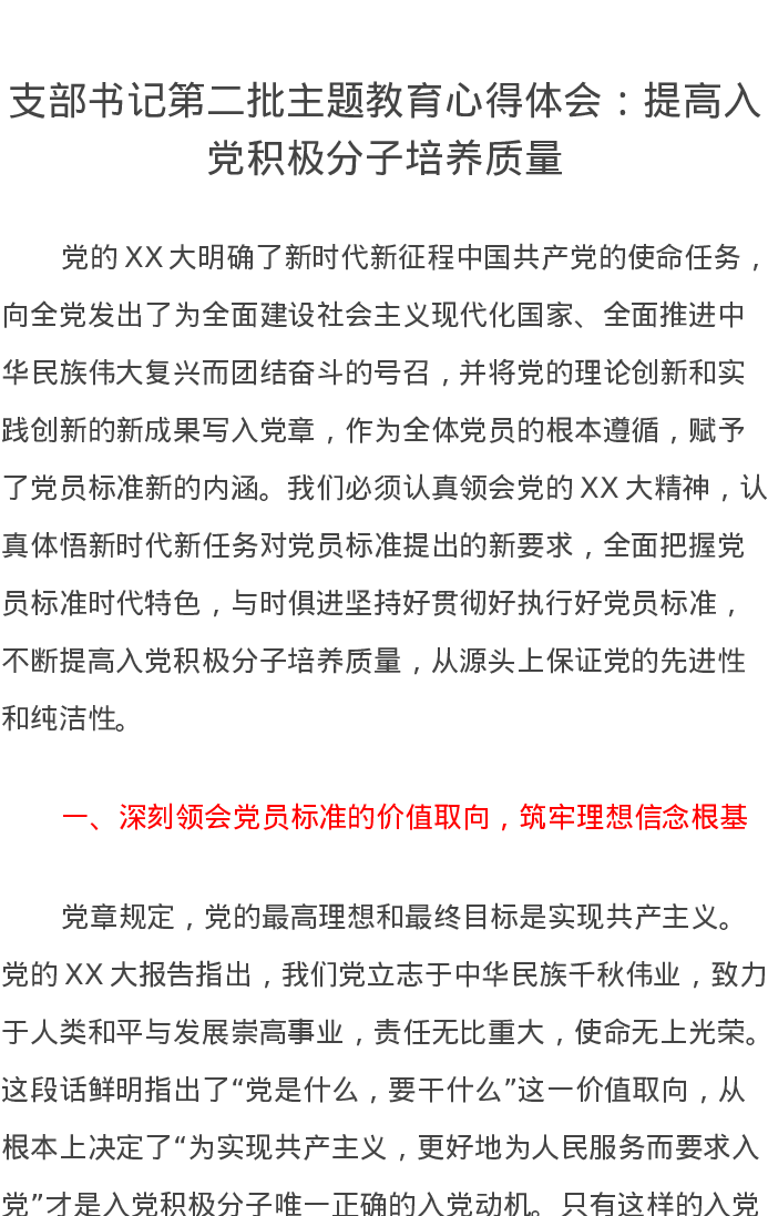 支部书记第二批主题教育心得体会:提高入党积极分子培养质量(特色社会主义思想)
