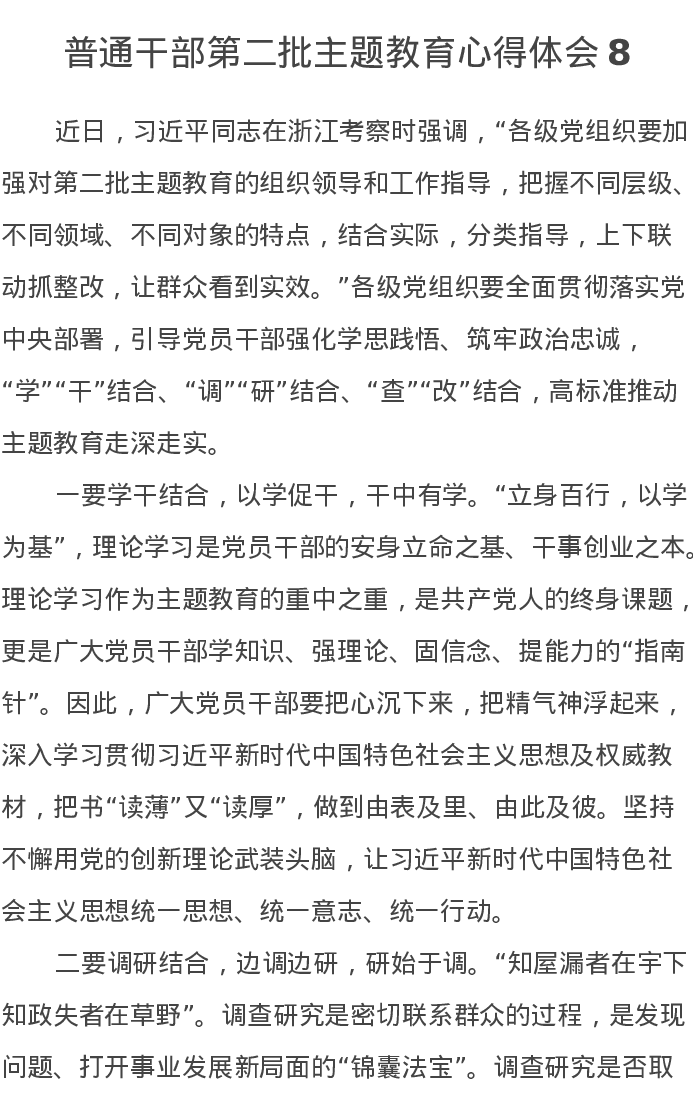 普通干部第二批主题教育心得体会8(特色社会主义思想)