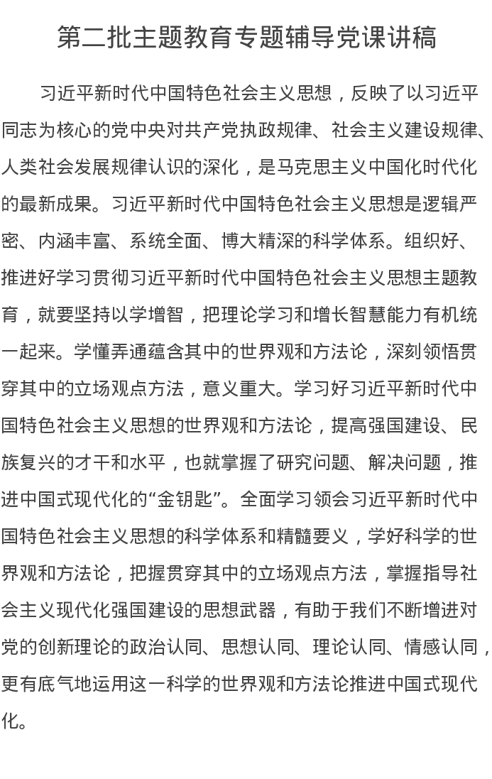 第二批主题教育专题辅导党课讲稿(特色社会主义思想)