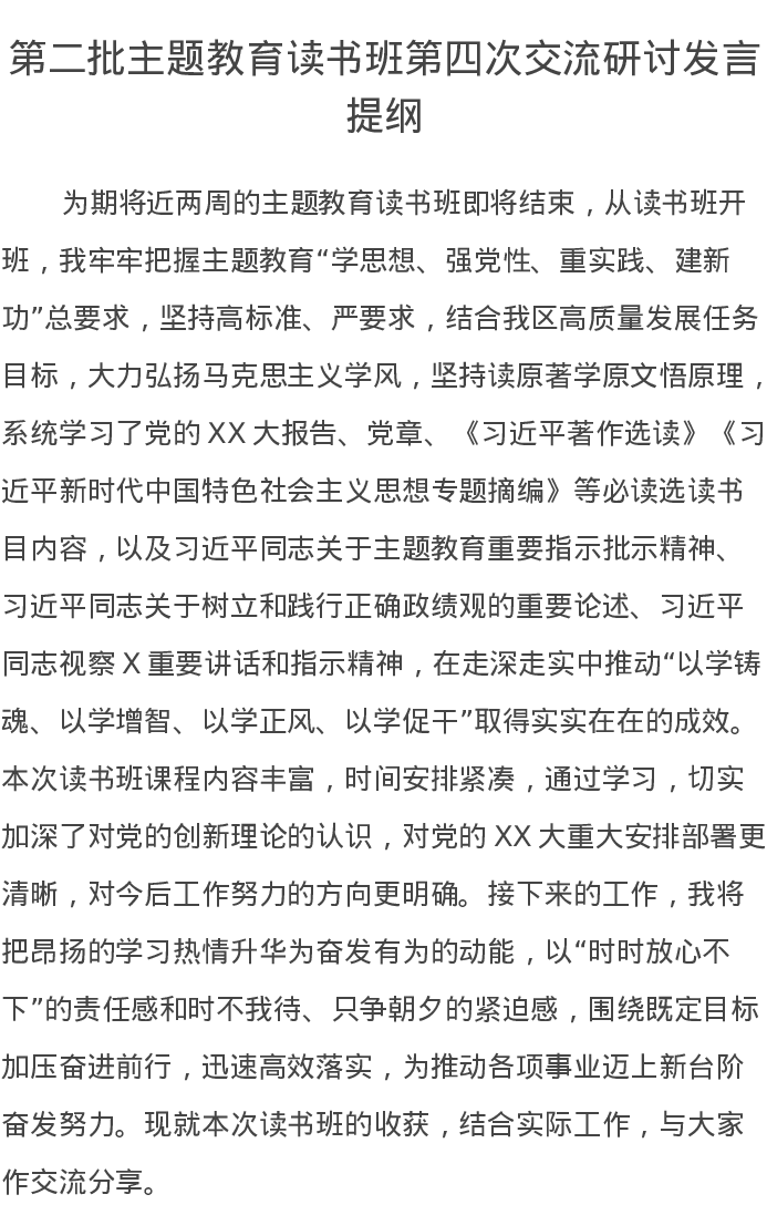 第二批主题教育读书班第四次交流研讨发言提纲(特色社会主义思想)