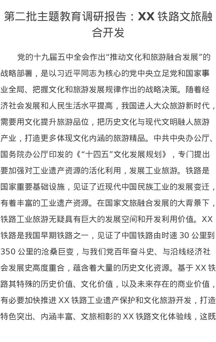 第二批主题教育调研报告:XX铁路文旅融合开发(特色社会主义思想)