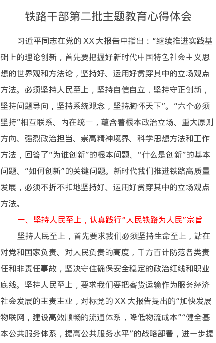 铁路干部第二批主题教育心得体会(特色社会主义思想)