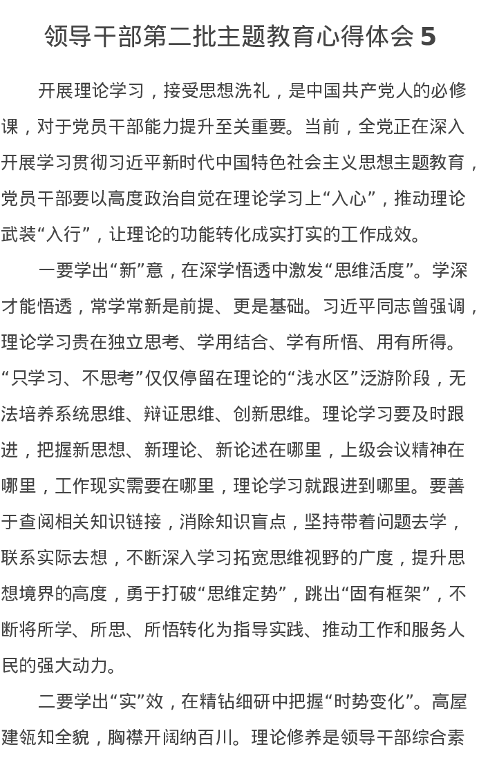领导干部第二批主题教育心得体会5(特色社会主义思想)