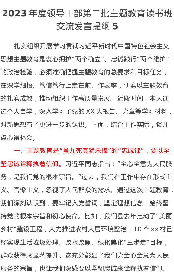 2023年度领导干部第二批主题教育读书班交流发言提纲16(特色社会主义思想)