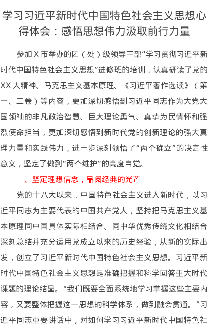 学习习近平新时代中国特色社会主义思想心得体会:感悟思想伟力汲取前行力量