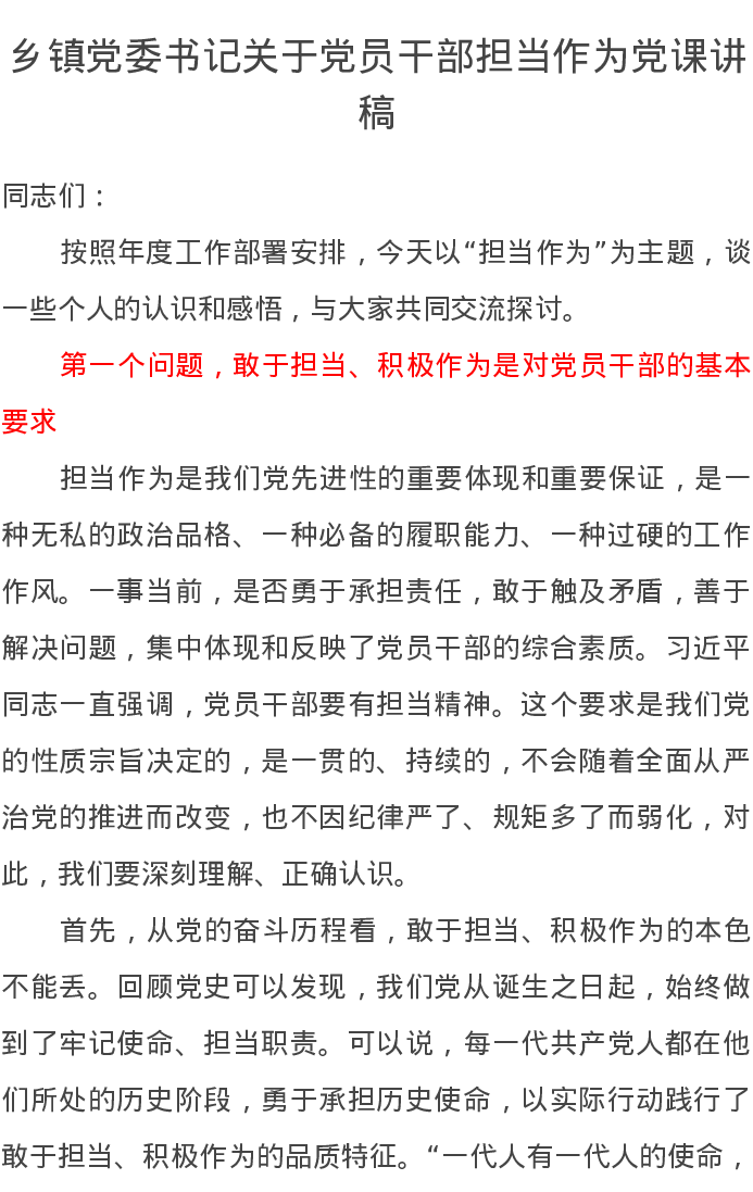 乡镇党委书记关于党员干部担当作为党课讲稿