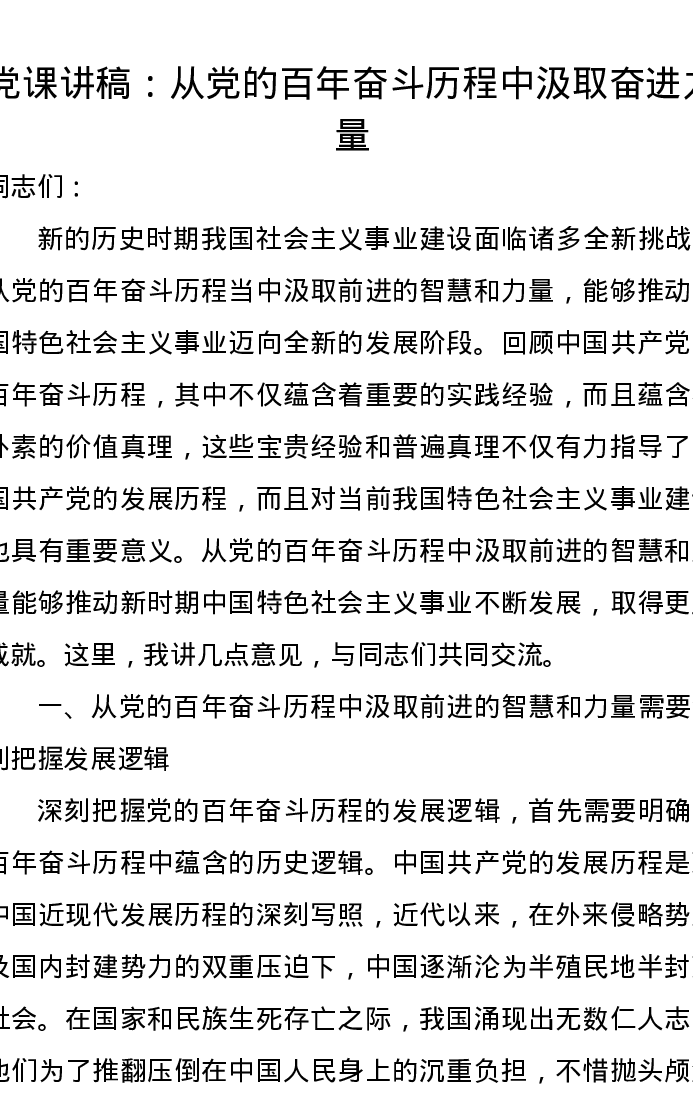 党课讲稿:从党的百年奋斗历程中汲取奋进力量