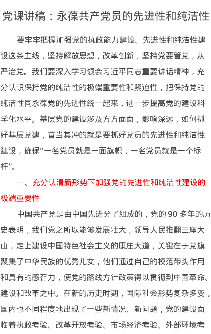 党课讲稿:永葆共产党员的先进性和纯洁性