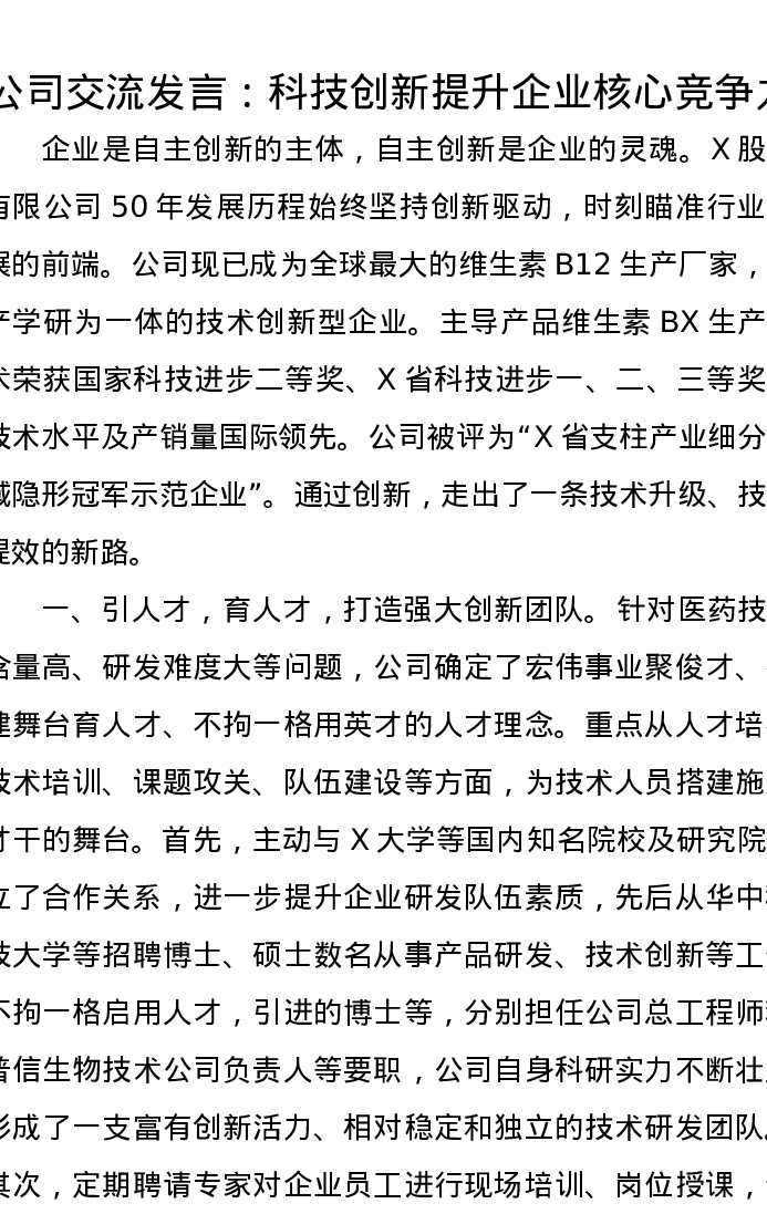 公司交流发言:科技创新提升企业核心竞争力