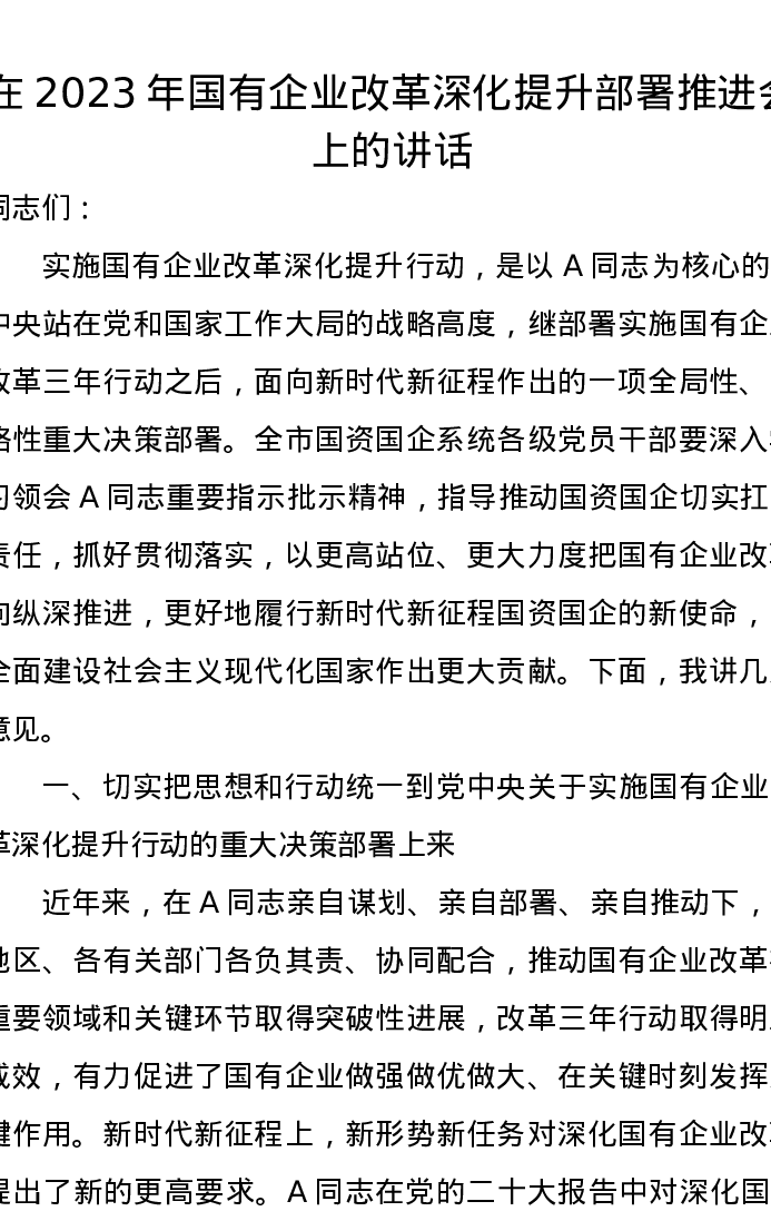 在2023年国有企业改革深化提升部署推进会上的讲话
