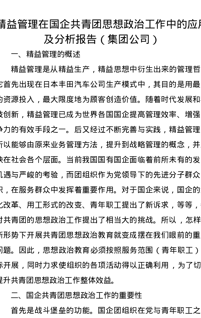 精益管理在国企共青团思想政治工作中的应用及分析报告(集团公司)