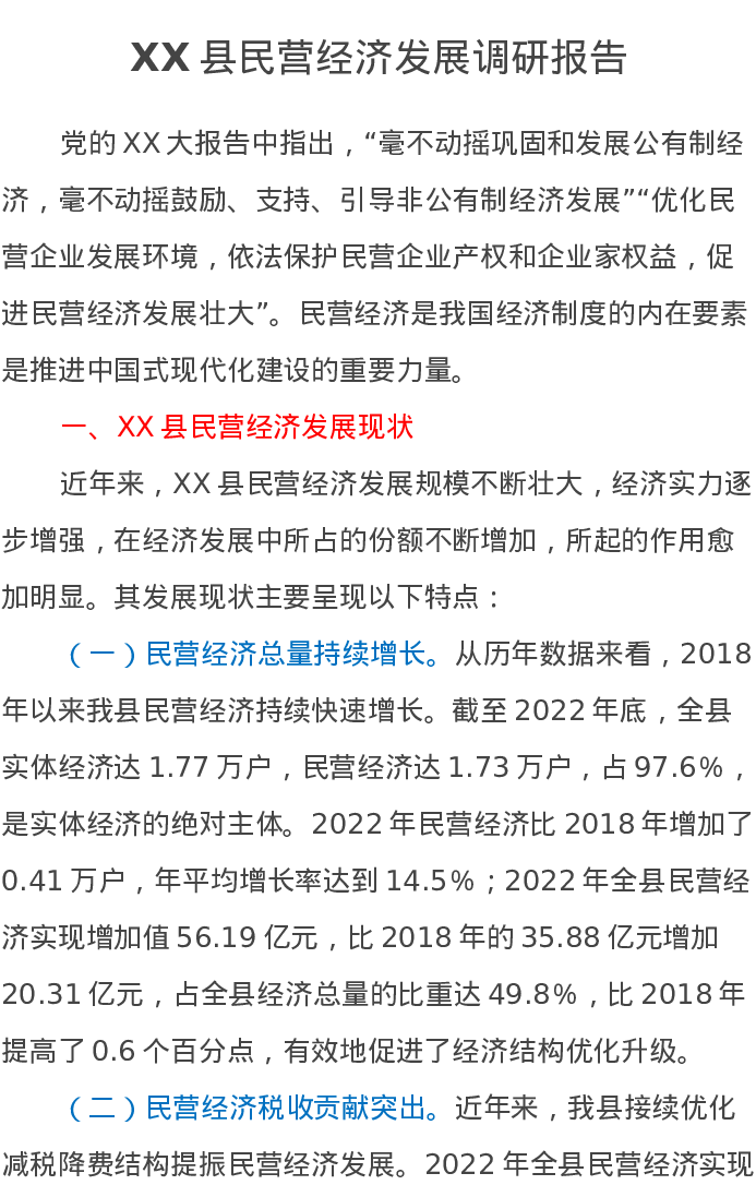 XX县民营经济发展调研报告