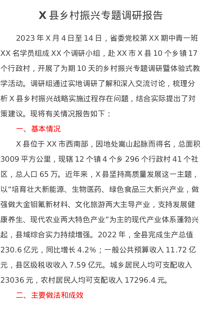 X县乡村振兴专题调研报告