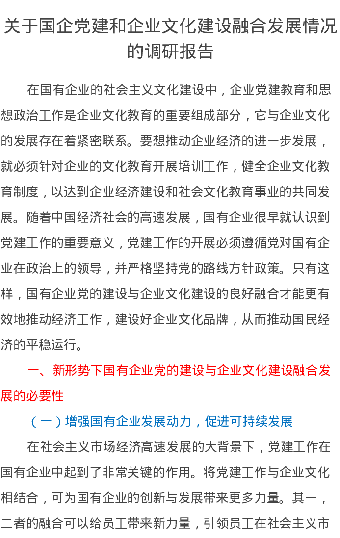 关于国企党建和企业文化建设融合发展情况的调研报告