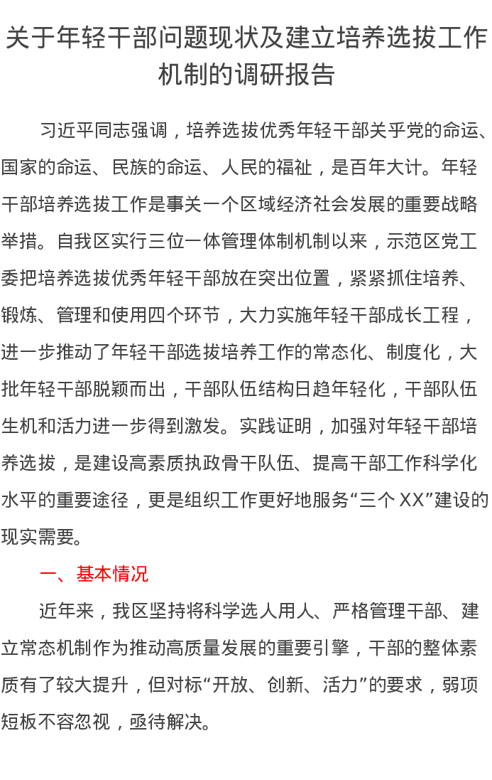 关于年轻干部问题现状及建立培养选拔工作机制的调研报告