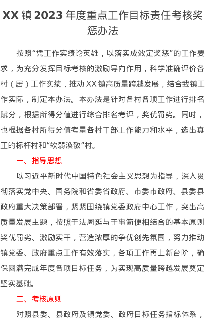 XX镇2023年度重点工作目标责任考核奖惩办法