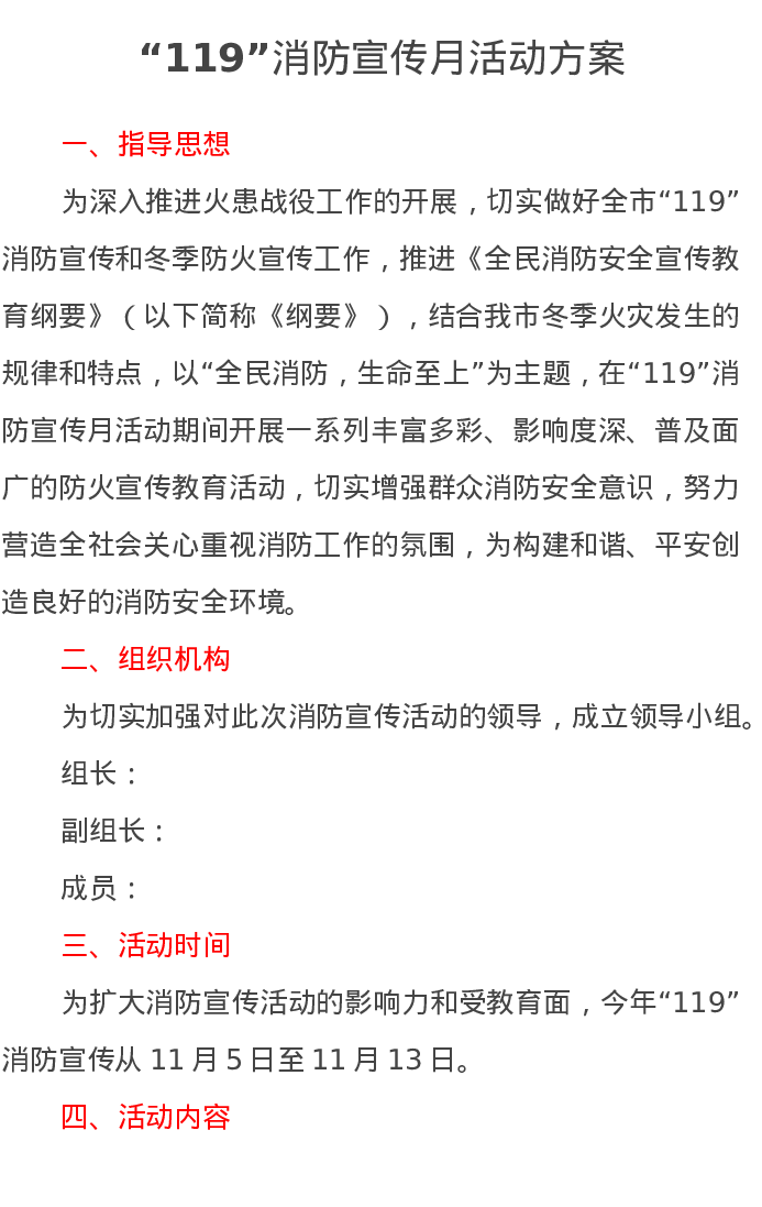 “119”消防宣传月活动方案