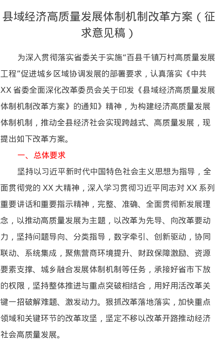 县域经济高质量发展体制机制改革方案(征求意见稿)