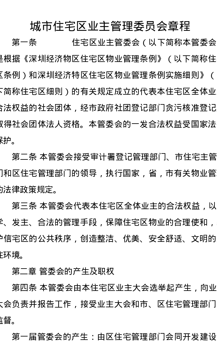 城市住宅区业主管理委员会章程